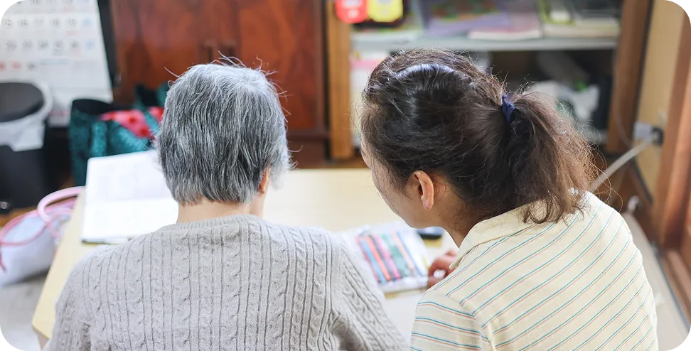 家族への指導・相談対応。介護負担の軽減や今後のケア方針を簡易助言。